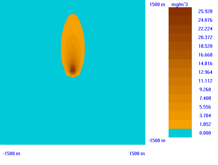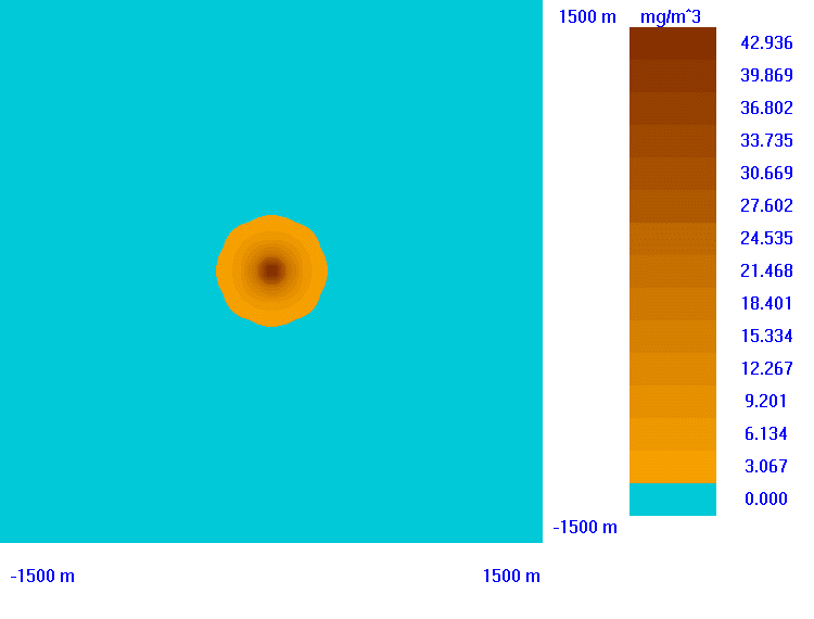 W celu porównania modeli przeprowadziłem obliczenia rozprzestrzeniania się zanieczyszczeń wokół źródła emisji.